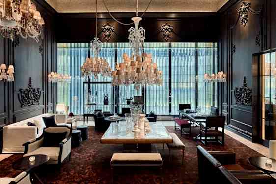 Baccarat Hotel New York är en strålande juvel i Manhattans hjärta som förenar fransk elegans med modern lyx. När du kliver in genom de imponerande dörrarna, är det som att kliva in i en annan värld. Här omfamnas du av det magiska skenet från kristallkronorna som glittrar som stjärnor på en klar natthimmel.