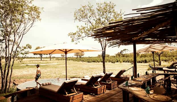 Vakna upp till ljudet av fågelkvitter och lejonens dova rytande som ekar genom landskapet. Låt erfarna experter ta med dig på en safaritur i öppna fordon där du möter stora buffelhjordar, graciösa antiloper och den sällsynta sabelantilopen. När du återvänder till lägret väntar den svalkande poolen och den vidsträckta utsikten över savannen.